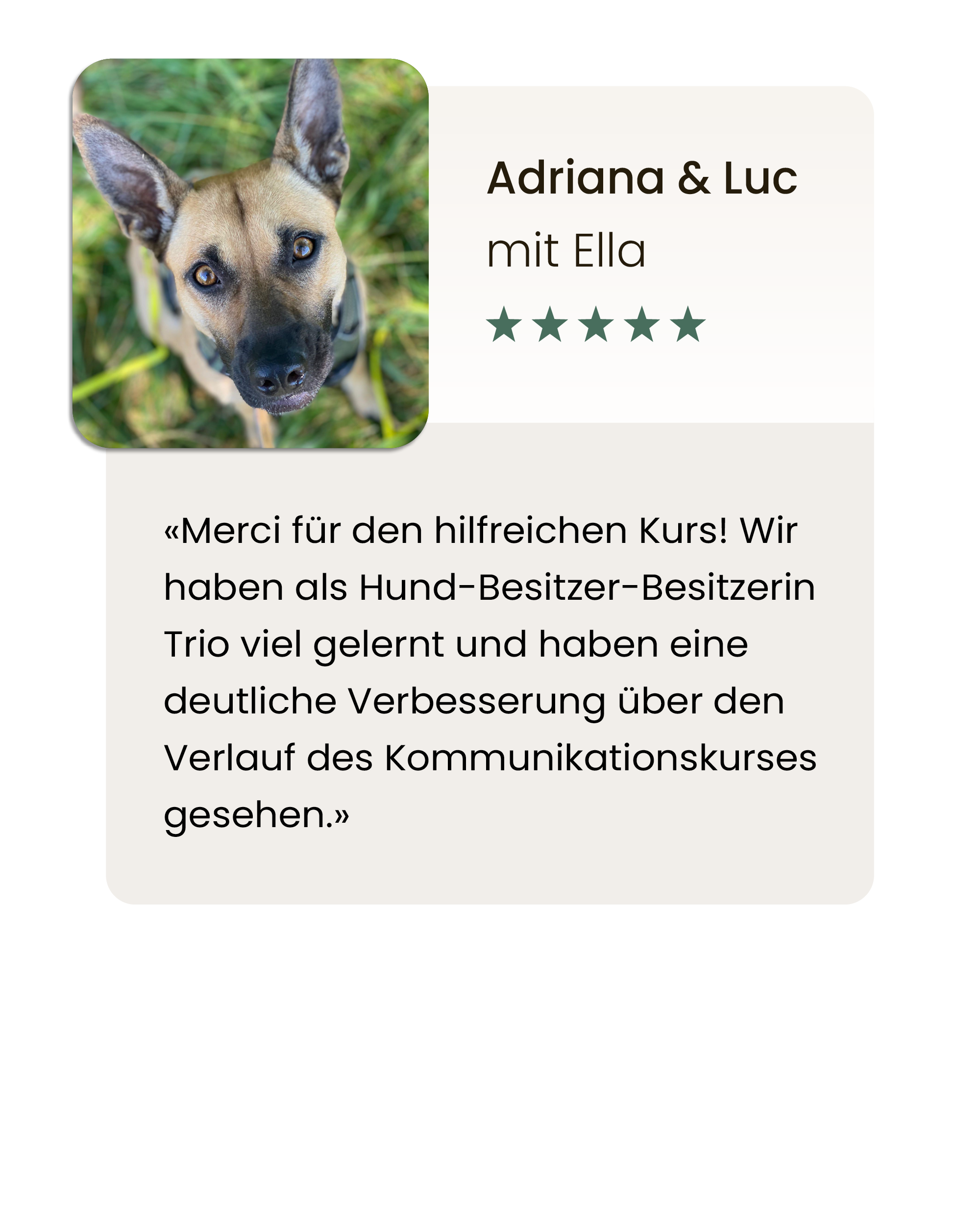 Das Ziel: Entspannte Begegnungen mit selbstbewussten Hunden. Und ein Mensch-Hund-Team, das sich versteht. Du lernst, die Körpersprache deines Hundes besser zu lesen, seine Bedürfnisse frühzeitig zu erkennen – und ihn gezielt zu unterstützen, wenn er dich braucht.